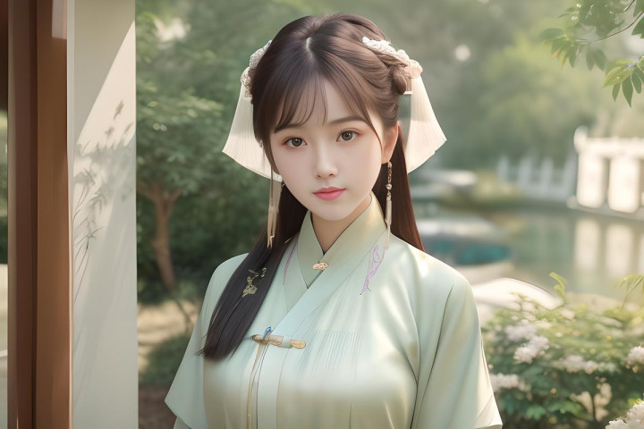晨光熹微,林府的院落里弥漫着一股淡淡的花香。林语嫣站在花园中的小桥上,手中握着一卷诗书,低眉浅笑,显得宁静而优雅。她轻轻翻动书页,柔和的阳光透过树叶洒在她的脸上,映出一片金黄。